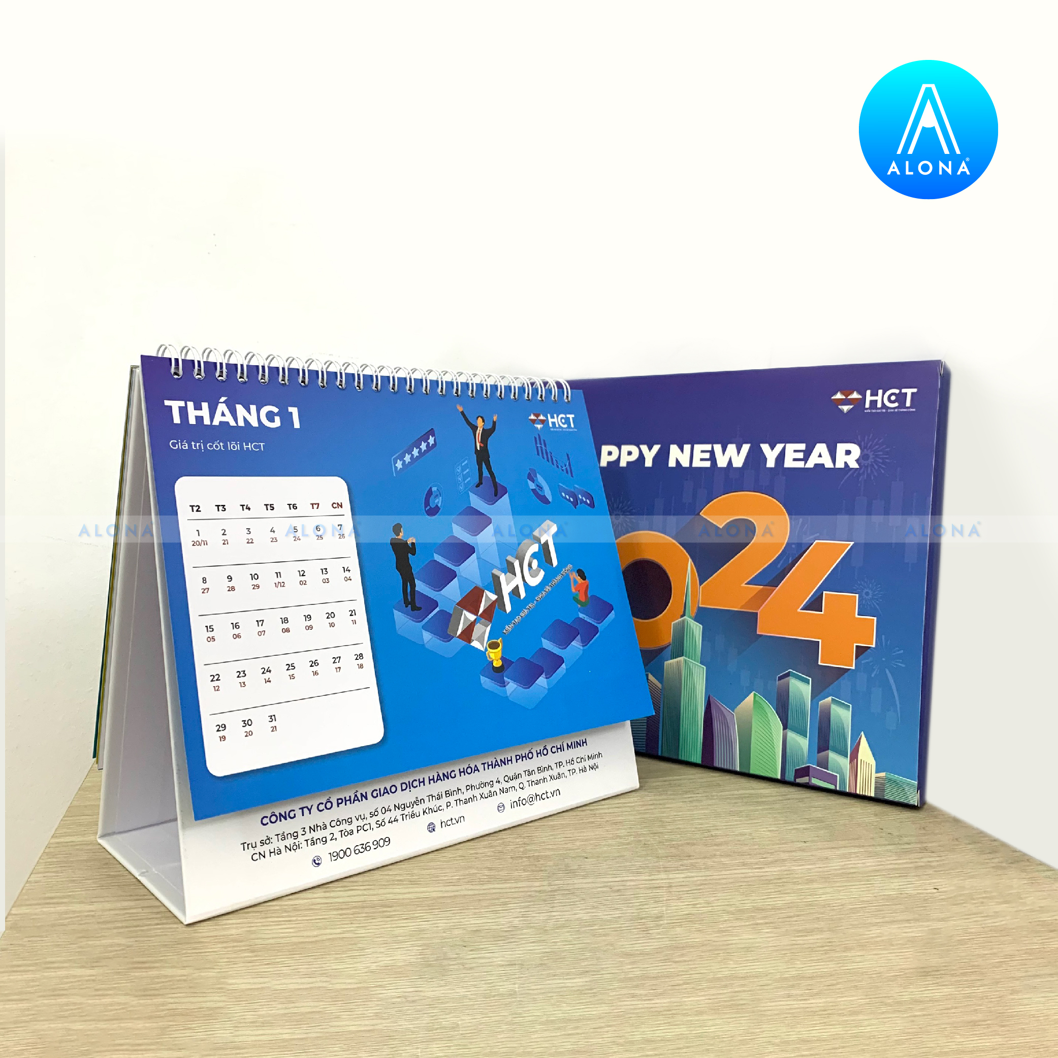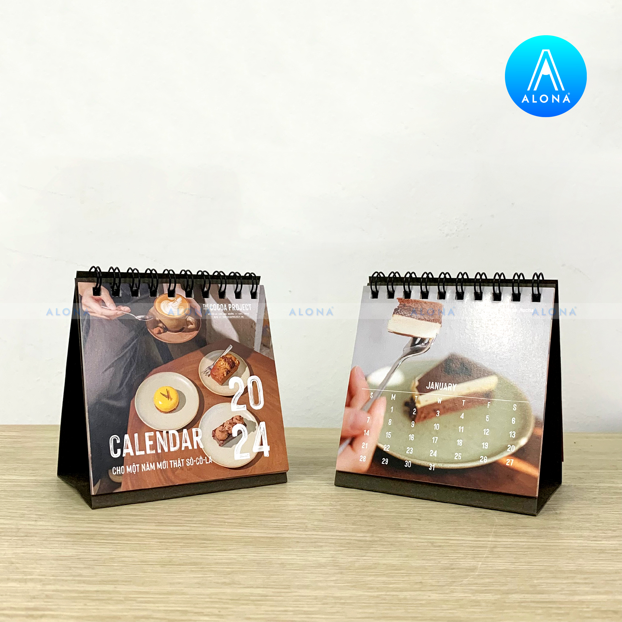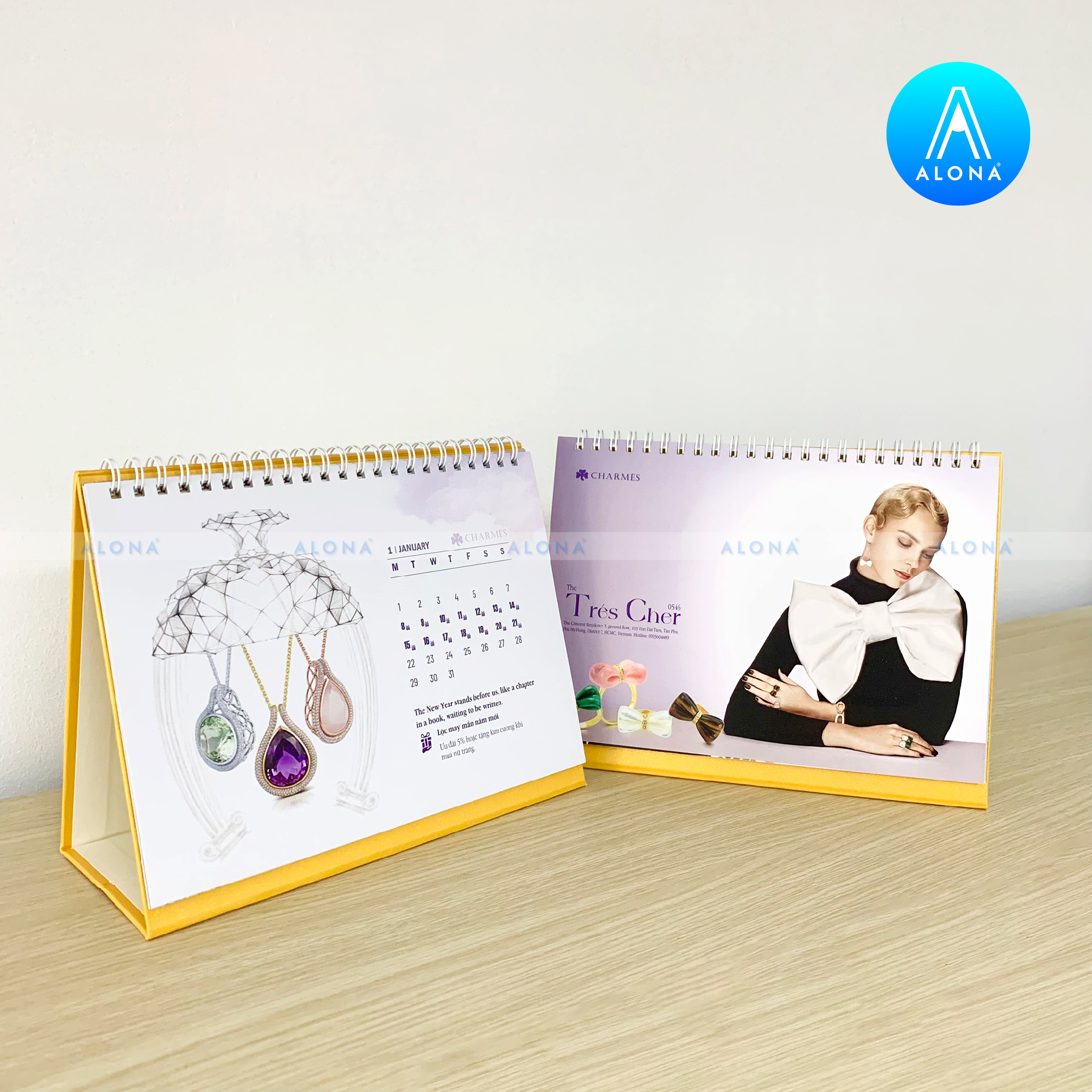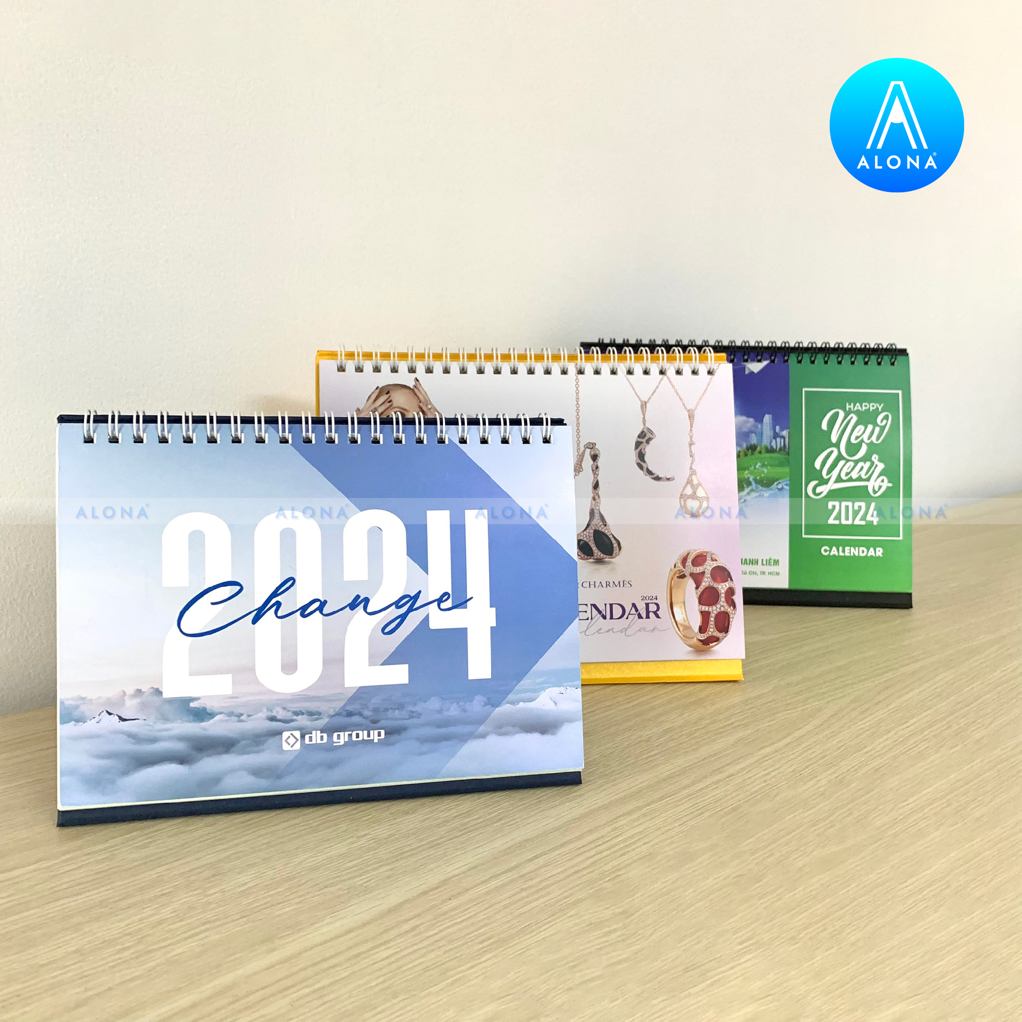 - Đa dạng kiểu dáng và chất liệu: Alona cung cấp thiết kế lịch Tết cho nhiều dạng như lịch để bàn, lịch treo tường, lịch bloc… với chất liệu giấy cao cấp, bền màu và thân thiện môi trường.