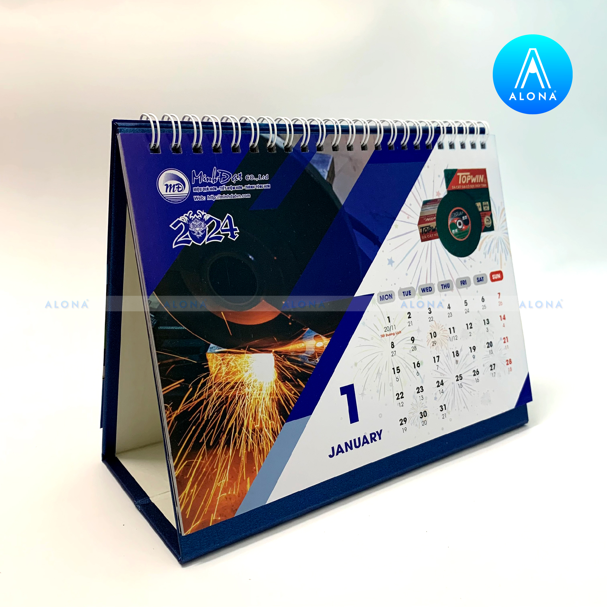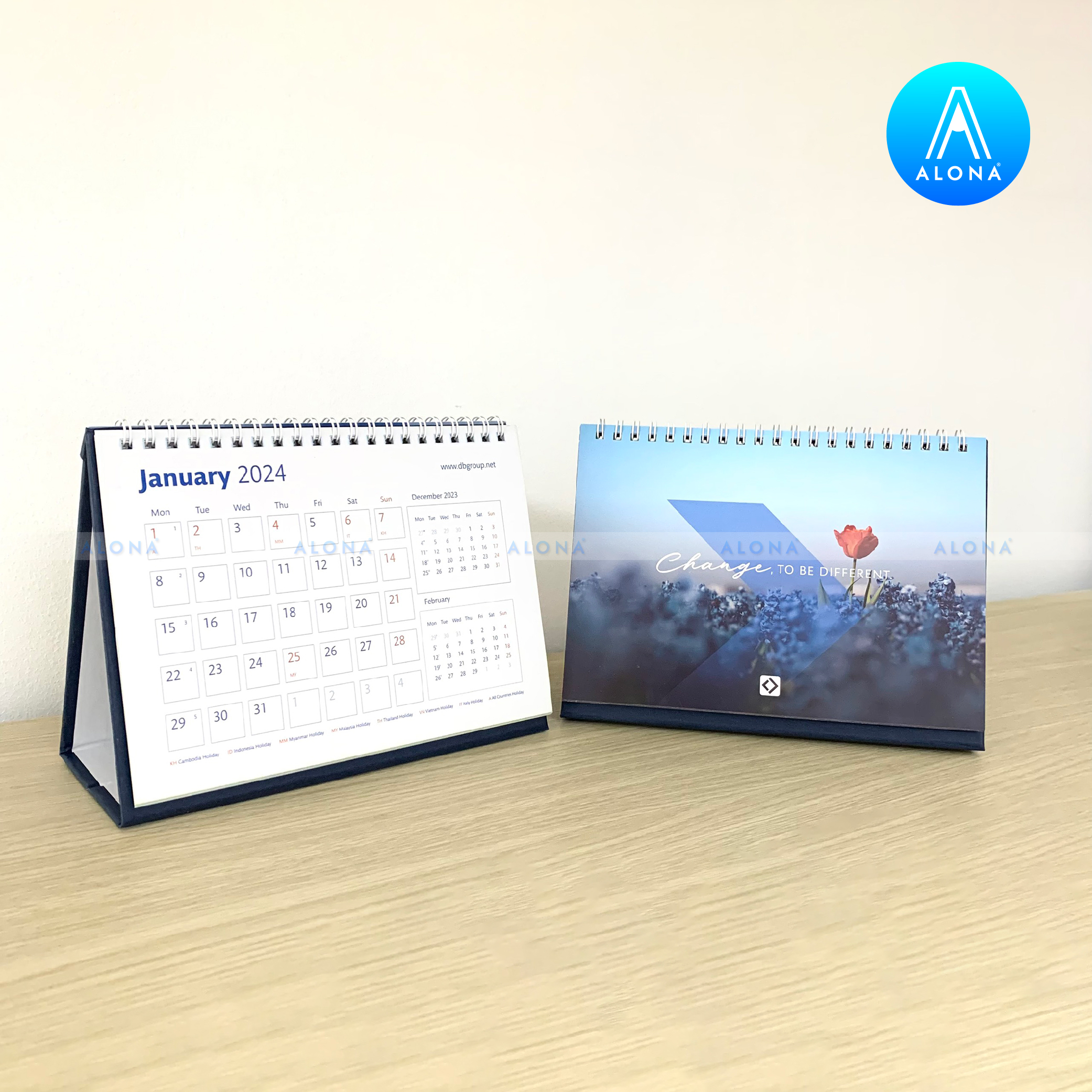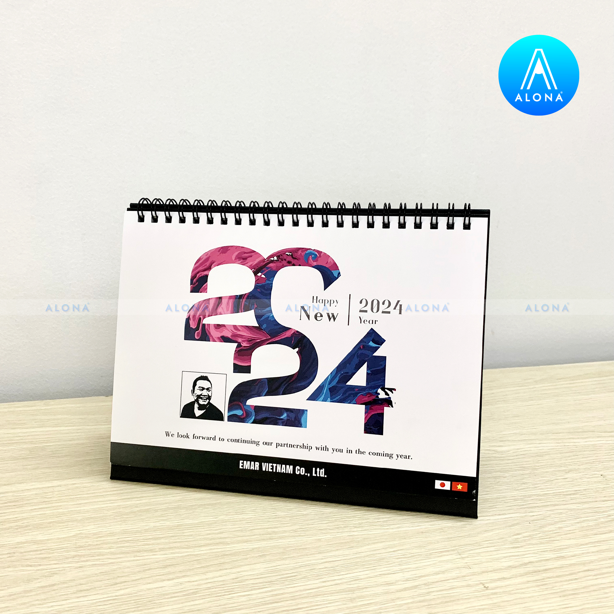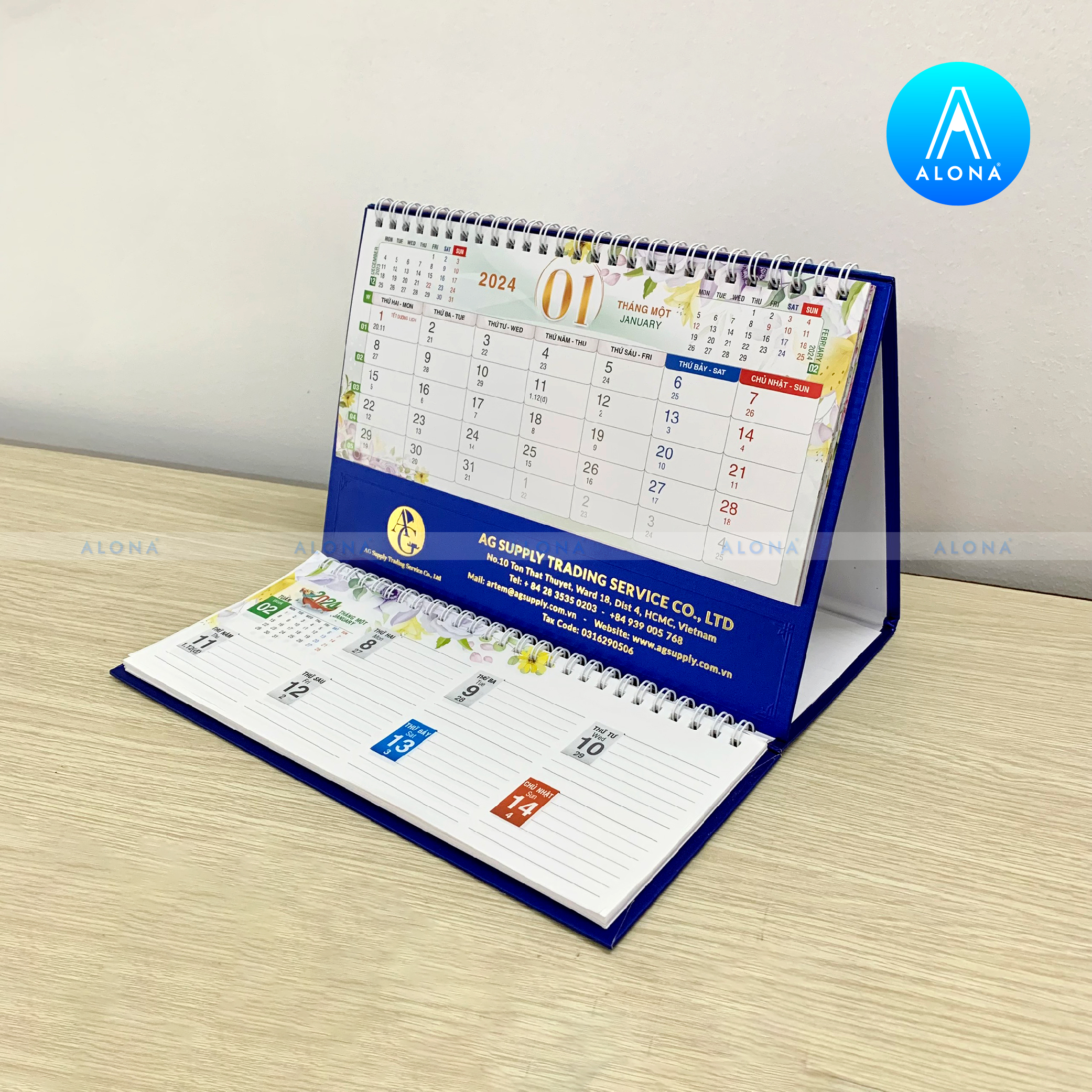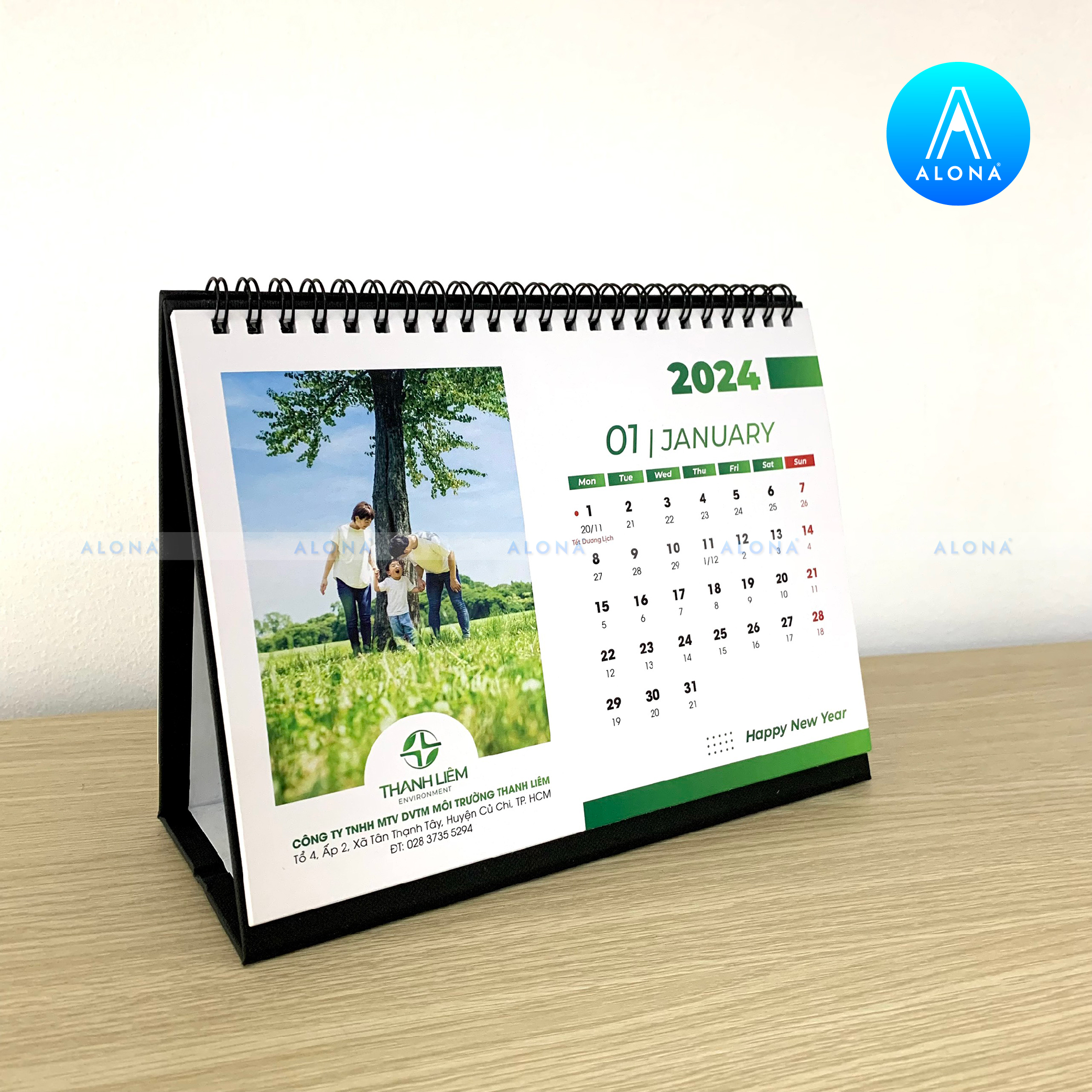- Đa dạng kiểu dáng và chất liệu: Alona cung cấp thiết kế lịch Tết cho nhiều dạng như lịch để bàn, lịch treo tường, lịch bloc… với chất liệu giấy cao cấp, bền màu và thân thiện môi trường.