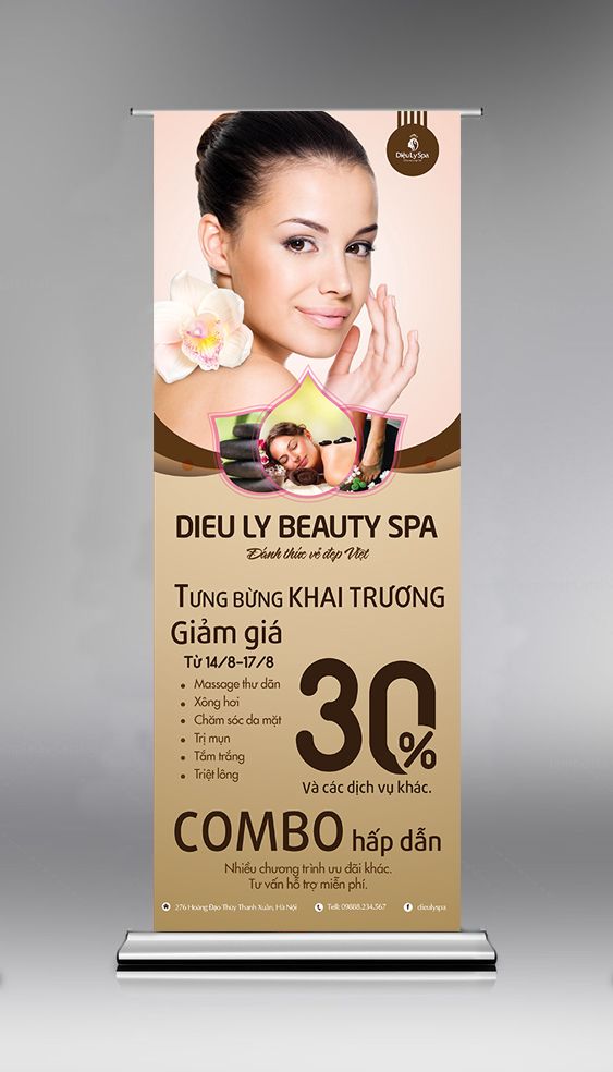 - Vị trí đặt thông tin: Các thông tin quan trọng nhất nên đặt ở vị trí ngang tầm mắt (khoảng 1/3 phía trên của standee). Thông tin liên hệ (địa chỉ, hotline) đặt ở dưới cùng.