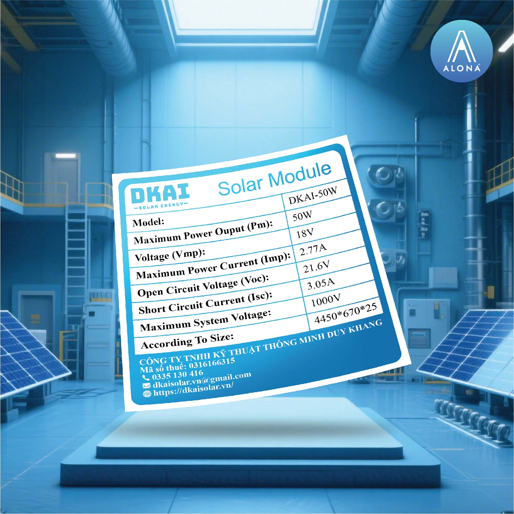 Tem nhãn DKAISOLAR - Chuẩn mực kỹ thuật, khẳng định chất lượng: Mỗi tem nhãn được thiết kế theo tiêu chuẩn công nghiệp, tập trung 100% vào thông số kỹ thuật, độ rõ ràng và tính chuẩn hóa. Đây không chỉ là những con số hay ký hiệu đơn thuần, mà là lời cam kết về chất lượng - "Chất lượng làm nên uy tín". Mỗi sản phẩm DKAISOLAR xuất xưởng đều mang theo tem nhãn này như một dấu ấn tin cậy, giúp khách hàng yên tâm về nguồn gốc, tiêu chuẩn và hiệu suất của hệ thống năng lượng mặt trời họ lựa chọn.