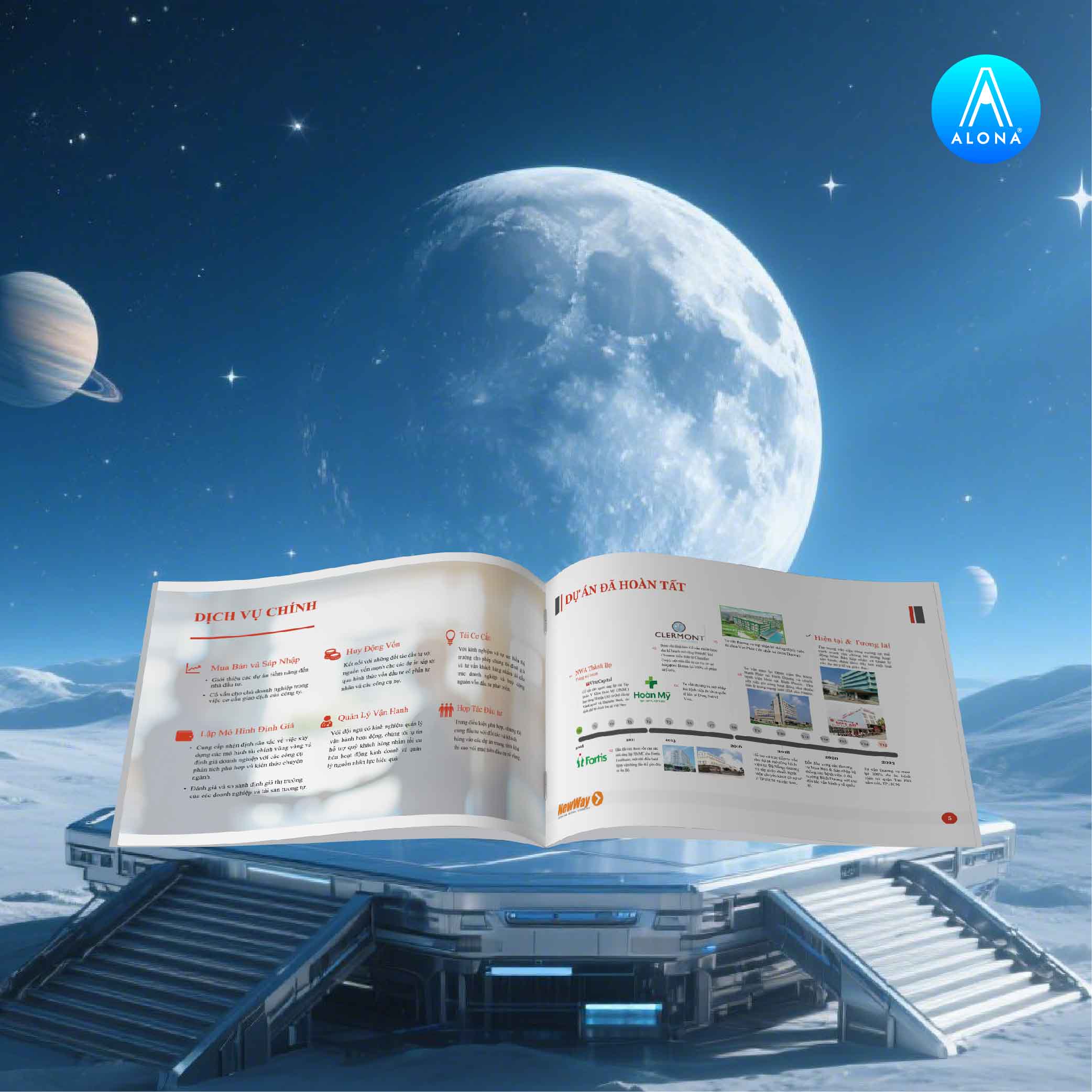 Bên trong, layout rõ ràng, dễ theo dõi, mỗi trang như một chương trình bay, giúp khách hàng nắm bắt từ tầm nhìn tổng quan đến chi tiết dịch vụ một cách khoa học và thuyết phục.