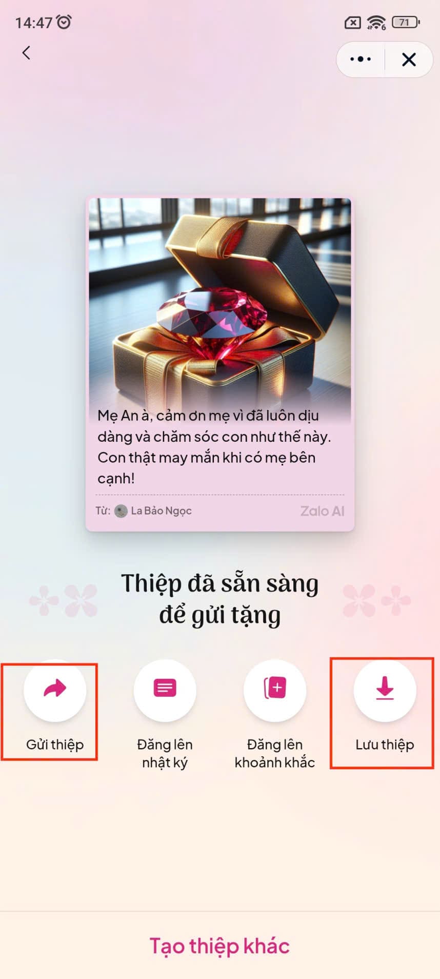 Bước 4: Tấm thiệp đã được hoàn thành, bạn có thể lựa chọn tải xuống để gửi sau hoặc gửi ngay cho người thân.