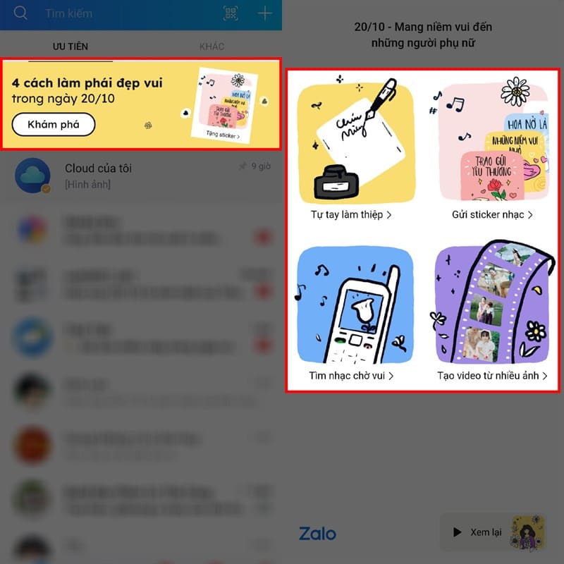 Bạn có thể tạo thiệp 20/10 trên zalo đơn giản theo các bước sau: