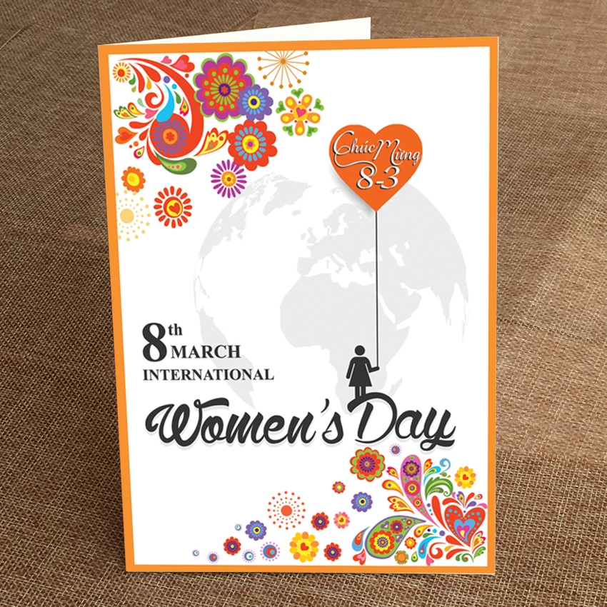 Các mẫu thiệp gập đôi hiện nay được biến tấu rất đa dạng với các họa tiết hoa cỏ mùa xuân, hình ảnh người phụ nữ cách điệu hoặc các biểu tượng trái tim ấm áp. Sự kết hợp giữa nét đẹp truyền thống và kỹ thuật in ấn hiện đại giúp những tấm thiệp này vừa giữ được sự trang trọng, vừa mang hơi thở tươi mới.