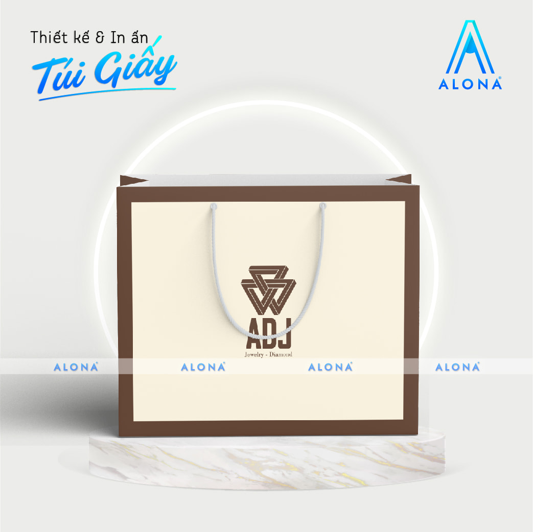 Mẫu túi giấy của ADJ do Alona sản xuất thể hiện sự sang trọng, quyền lực và sức mạnh của thương hiệu và sản phẩm trang sức đá quý.