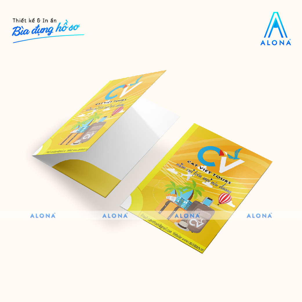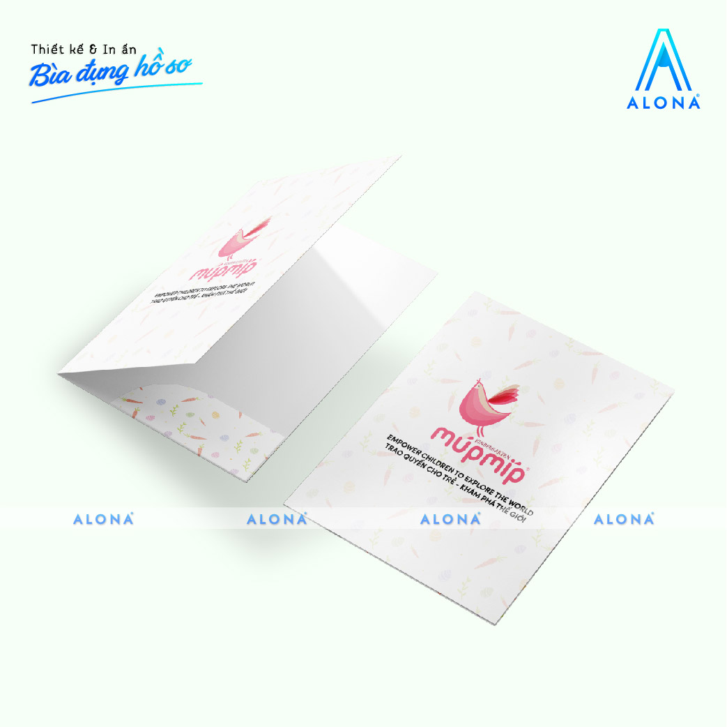 Chúng tôi tư vấn kích thước phổ biến (22 × 31 cm), phù hợp giấy A4, cùng chất liệu giấy Couche, Ivory hoặc Bristol bền đẹp. Bìa đựng được in bằng công nghệ offset chất lượng cao, màu sắc chuẩn xác, logo rõ nét, cán màng bóng/mờ theo yêu cầu. Quy trình sản xuất khép kín tại Alona đảm bảo chi phí hợp lý, giao hàng đúng hẹn và chất lượng như cam kết.