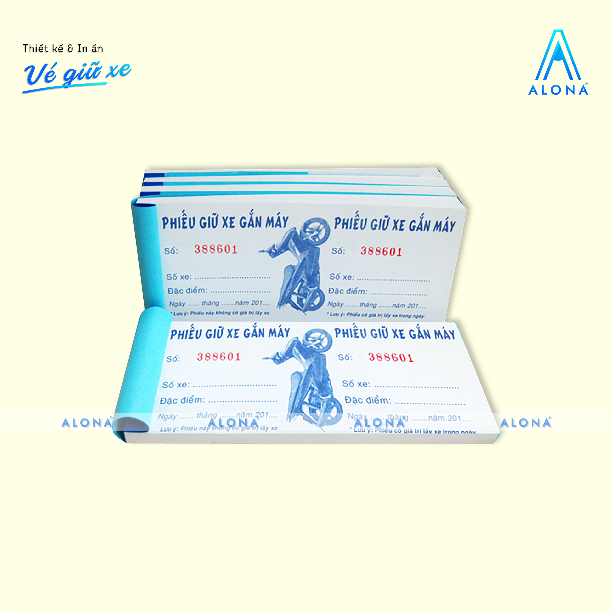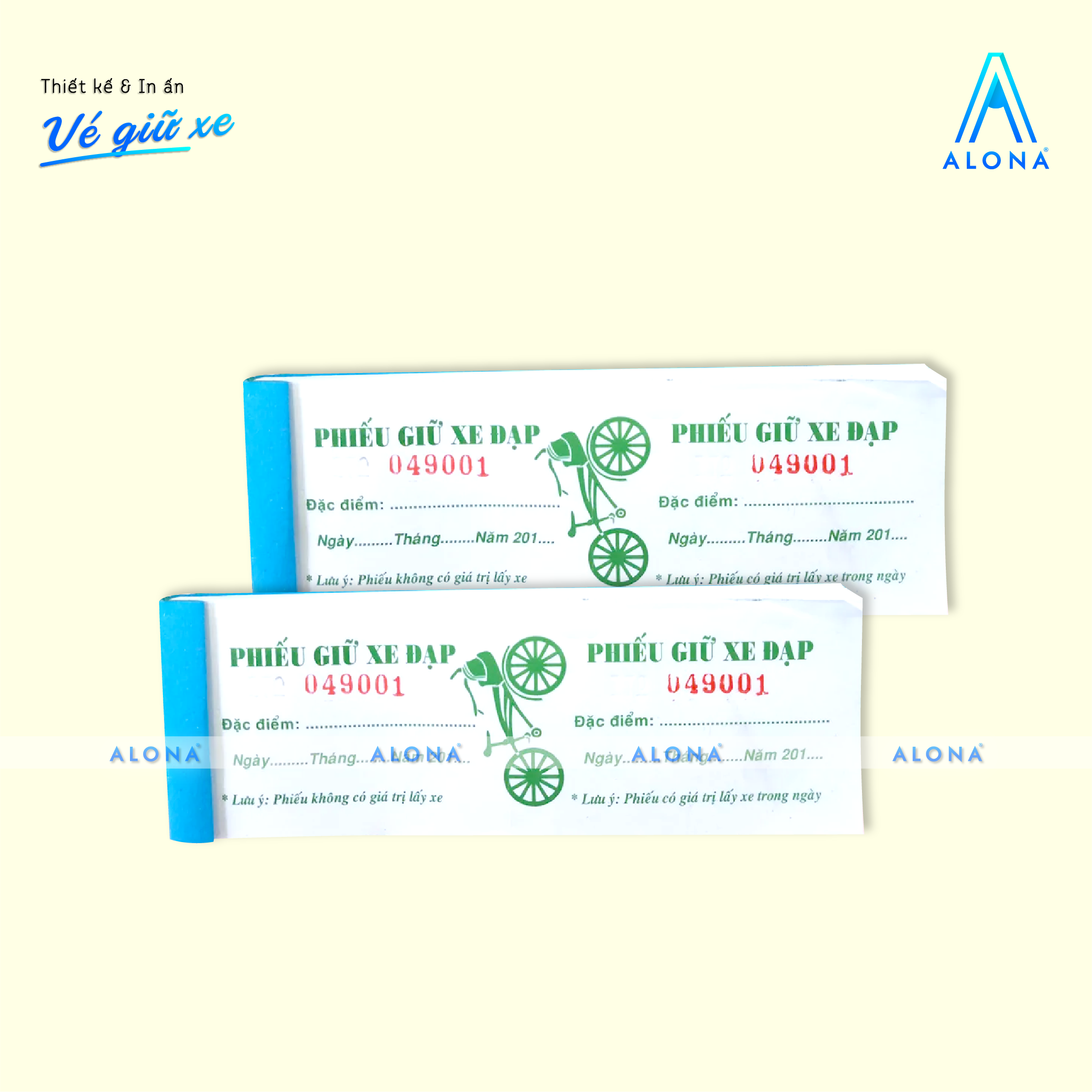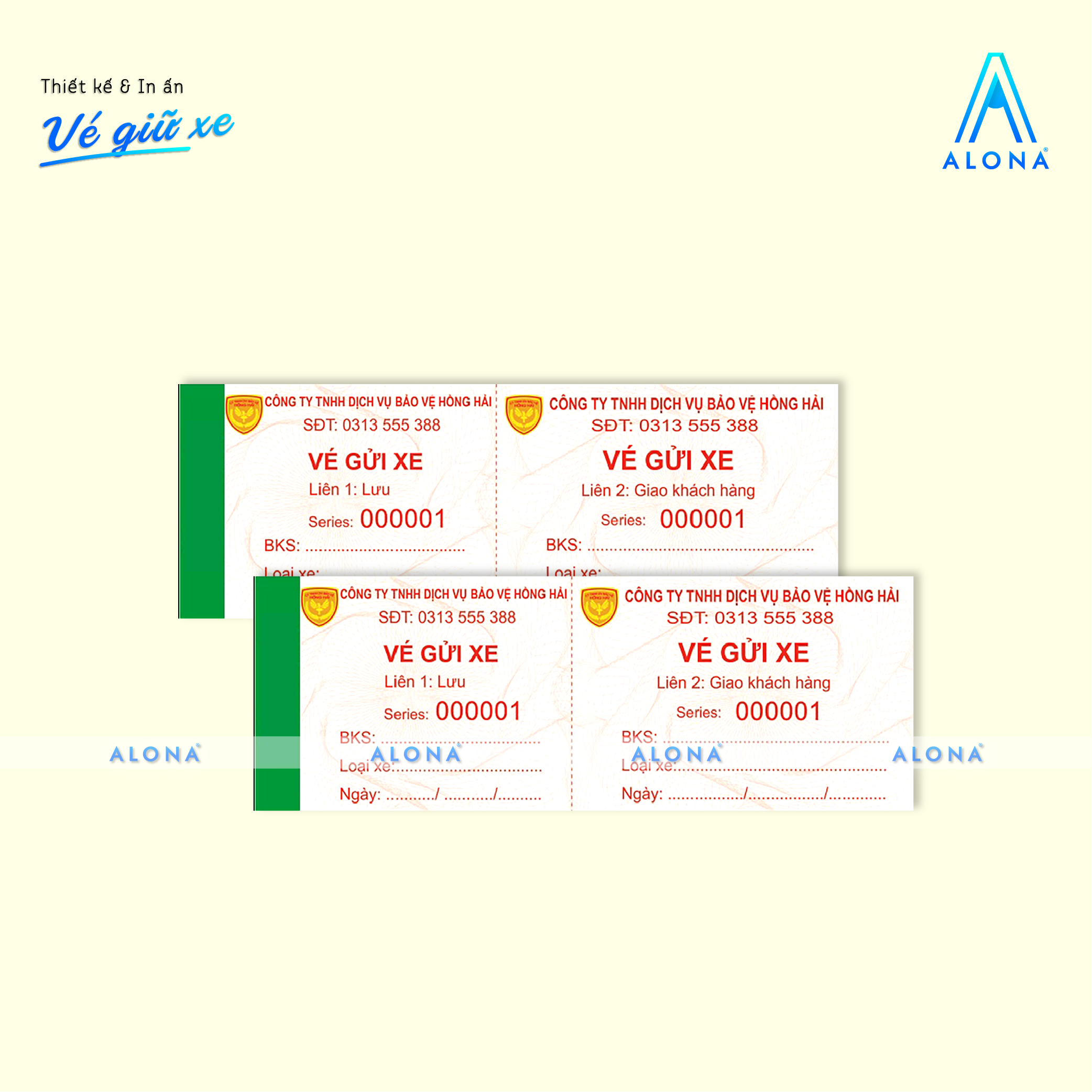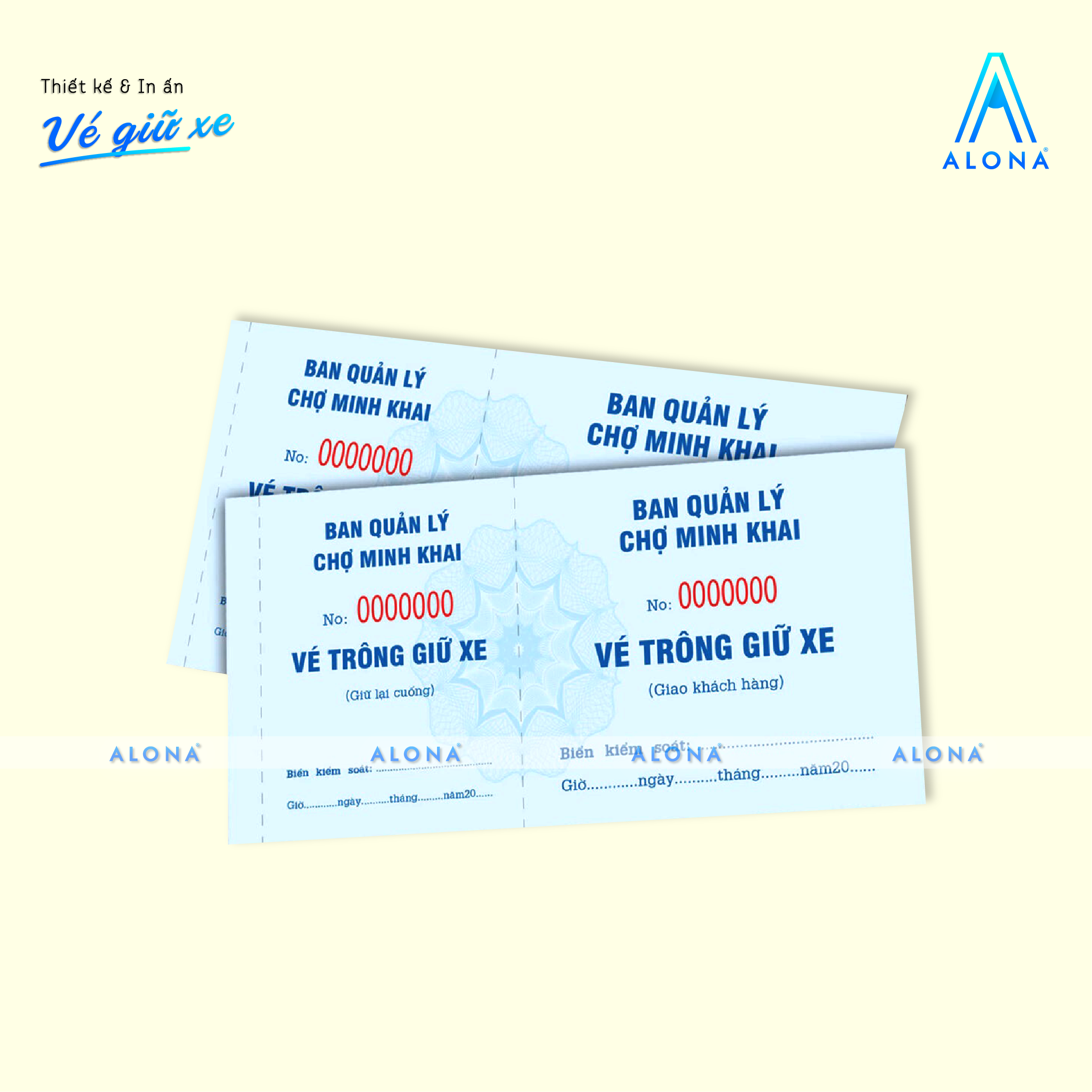 Alona mang đến giải pháp thiết kế vé giữ xe vừa tiện dụng vừa đảm bảo tính thẩm mỹ và chuyên nghiệp cho doanh nghiệp, bãi giữ xe hoặc trung tâm thương mại. Với đội ngũ thiết kế sáng tạo, chúng tôi giúp bạn sở hữu những mẫu vé rõ ràng, dễ sử dụng, đồng thời thể hiện đồng bộ hình ảnh thương hiệu trong từng chi tiết.