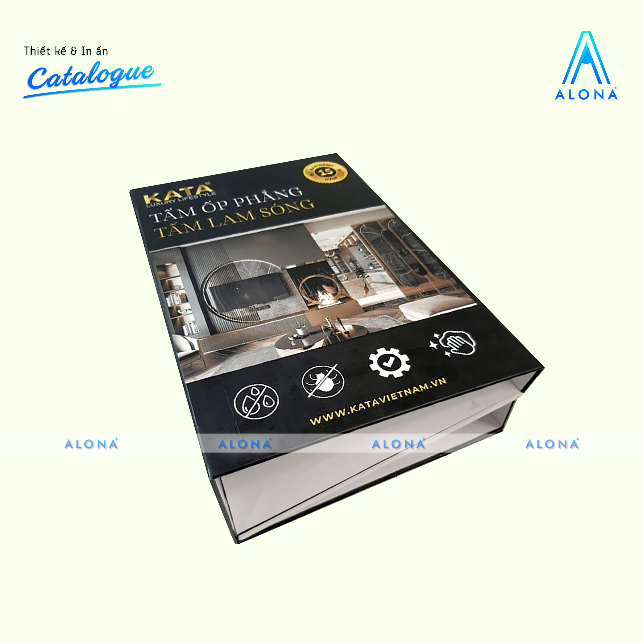 Alona không chỉ in ấn mà còn mang đến dịch vụ thiết kế catalogue bìa cứng cao cấp, giúp doanh nghiệp khẳng định sự chuyên nghiệp và đẳng cấp thương hiệu ngay từ ánh nhìn đầu tiên.