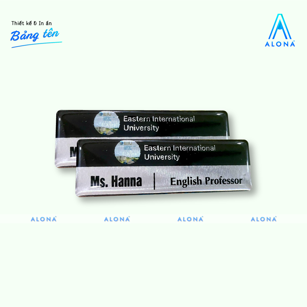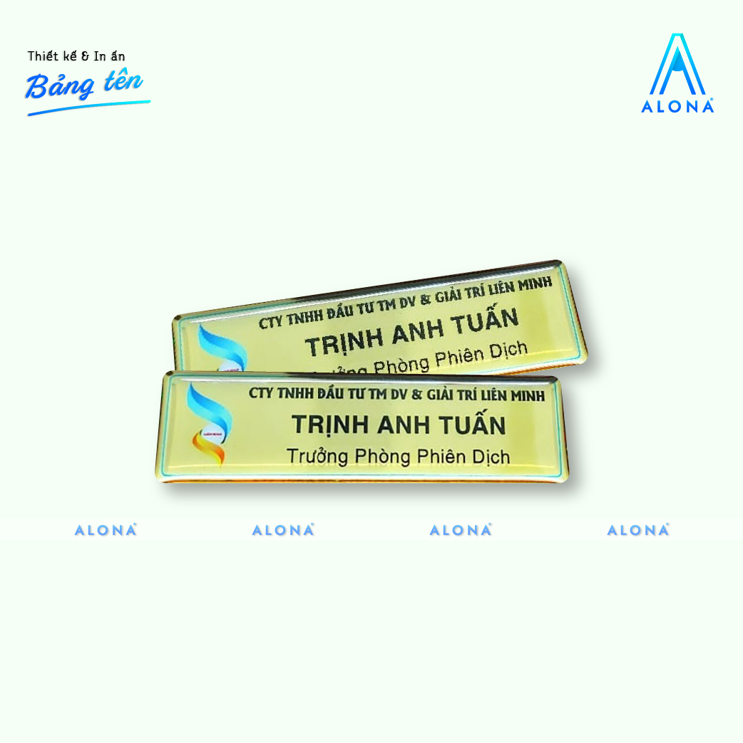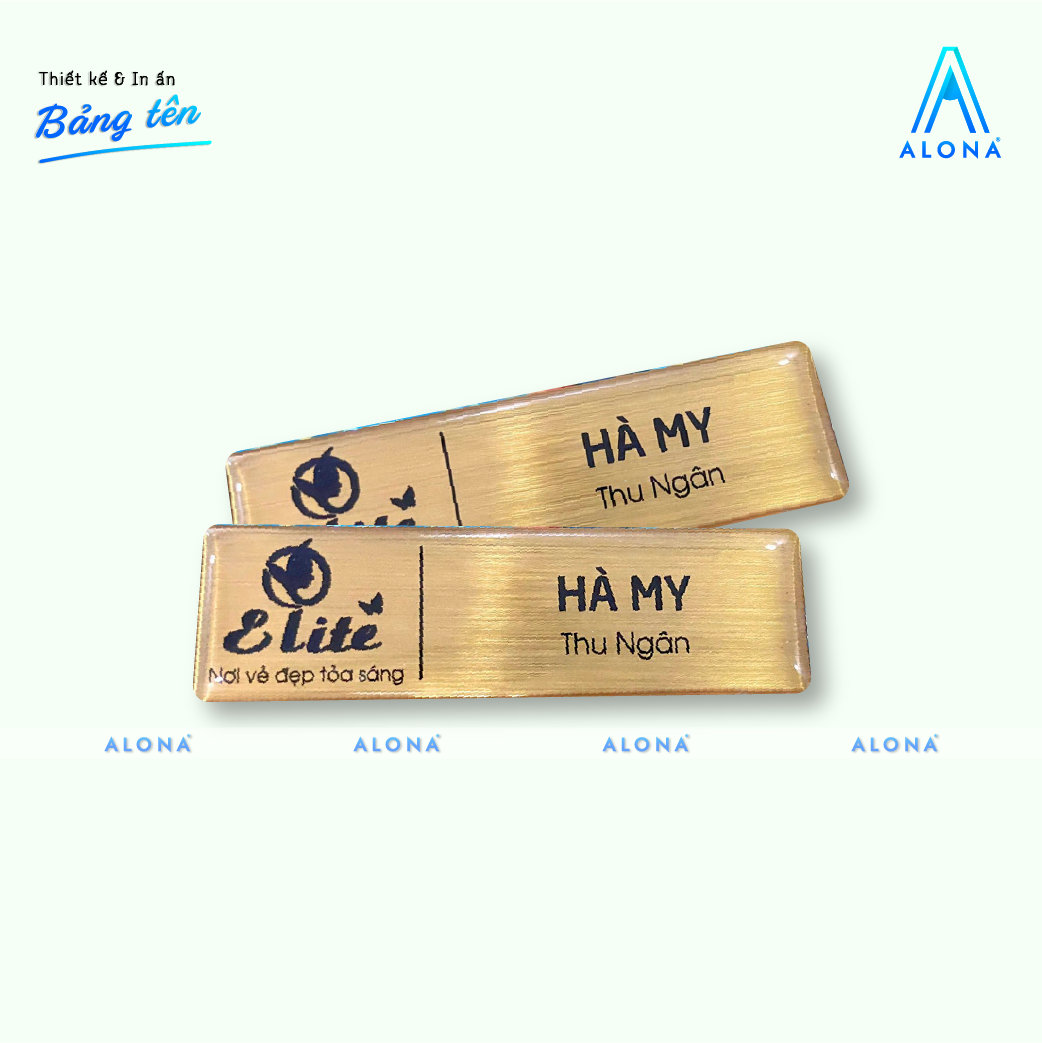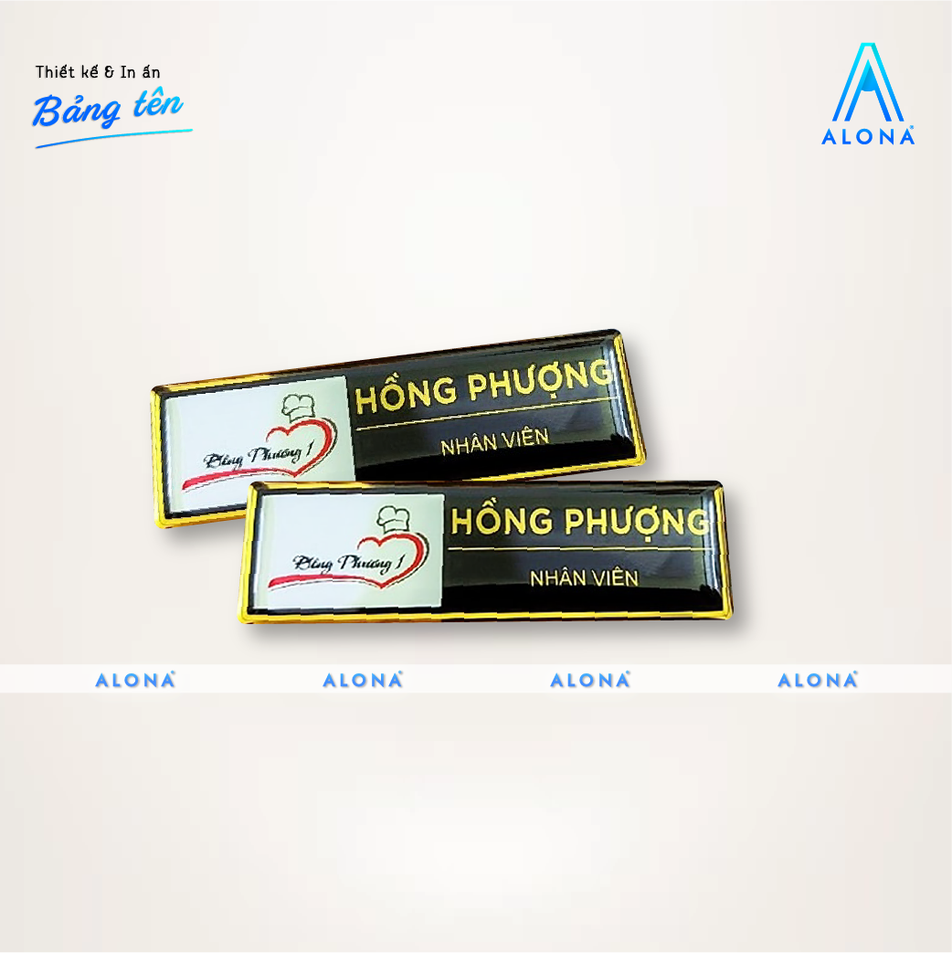 Alona sở hữu đội ngũ designer giàu kinh nghiệm và hệ thống máy móc hiện đại, mang đến sản phẩm bảng tên nhân viên vừa tinh tế vừa chuyên nghiệp. Không chỉ hiển thị tên và chức vụ rõ ràng, bảng tên còn góp phần nâng tầm hình ảnh thương hiệu và tạo ấn tượng tốt ngay từ cái nhìn đầu tiên.