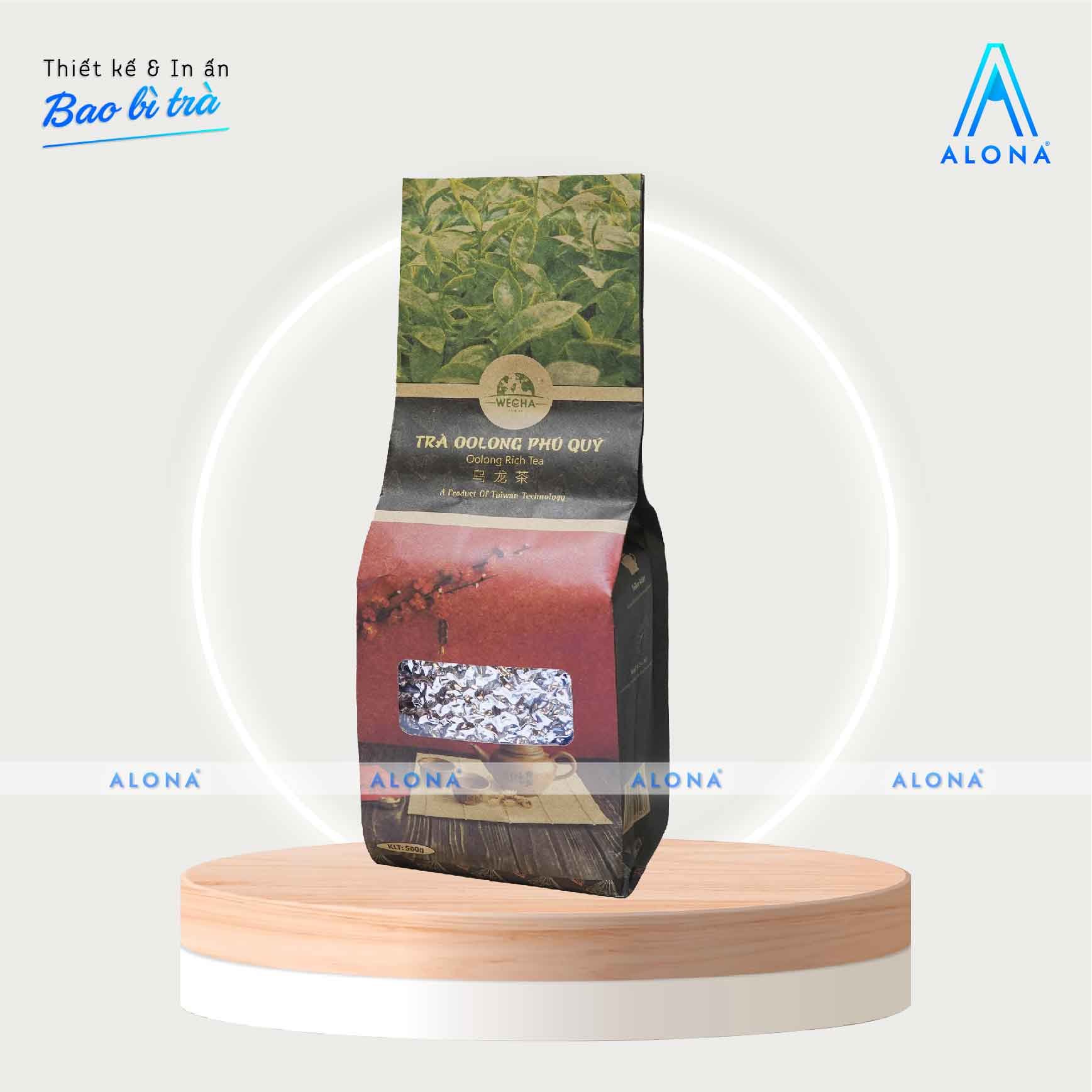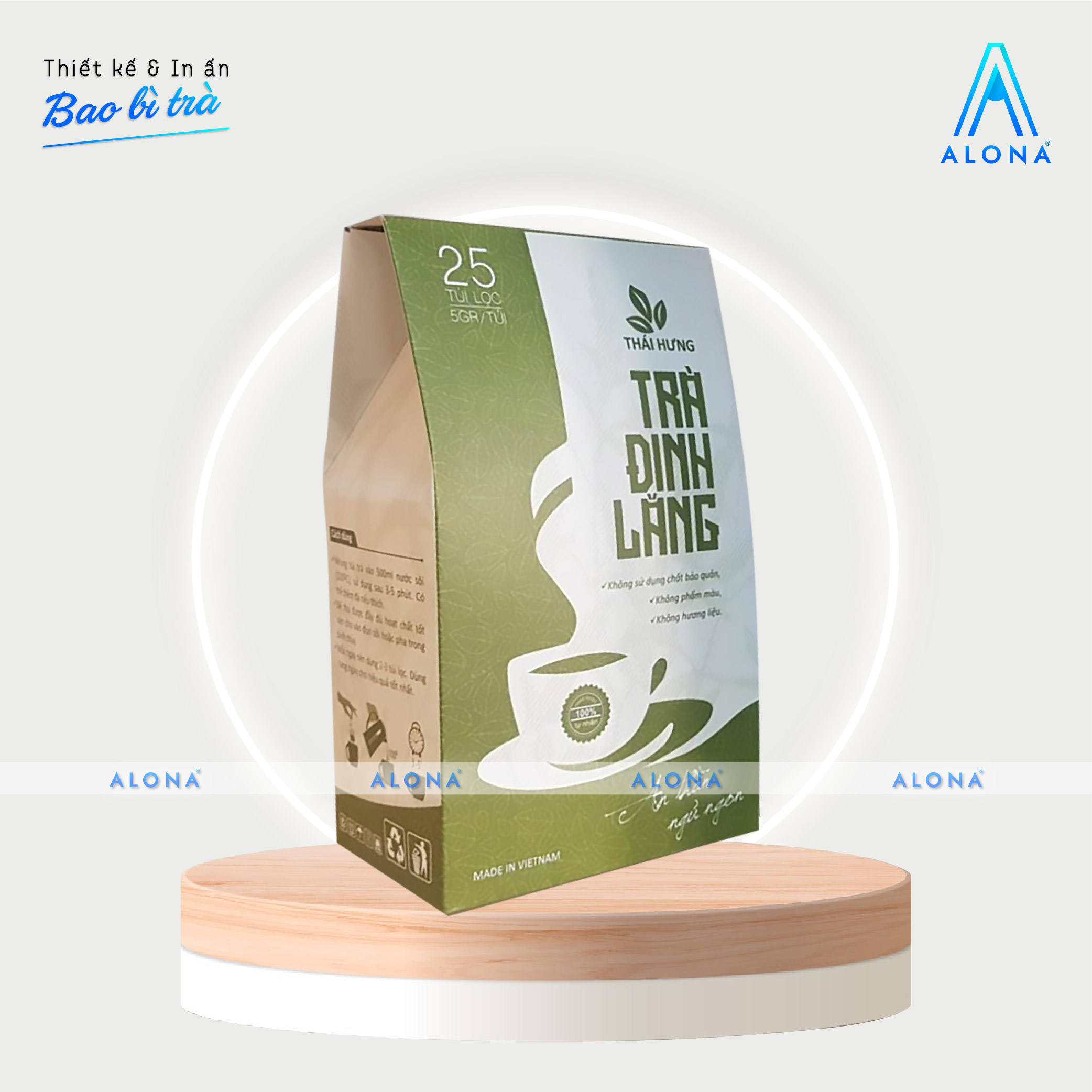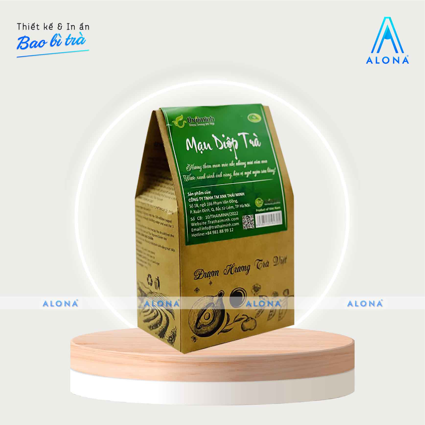 Bên cạnh tính thẩm mỹ, Alona còn tư vấn giải pháp chất liệu và công nghệ in phù hợp để vừa bảo quản trà tối ưu, vừa nâng cao giá trị thương hiệu. Quy trình khép kín từ ý tưởng, thiết kế, chọn chất liệu đến sản xuất giúp bạn tiết kiệm thời gian, chi phí và sở hữu bao bì trà hoàn thiện, sẵn sàng chinh phục thị trường.