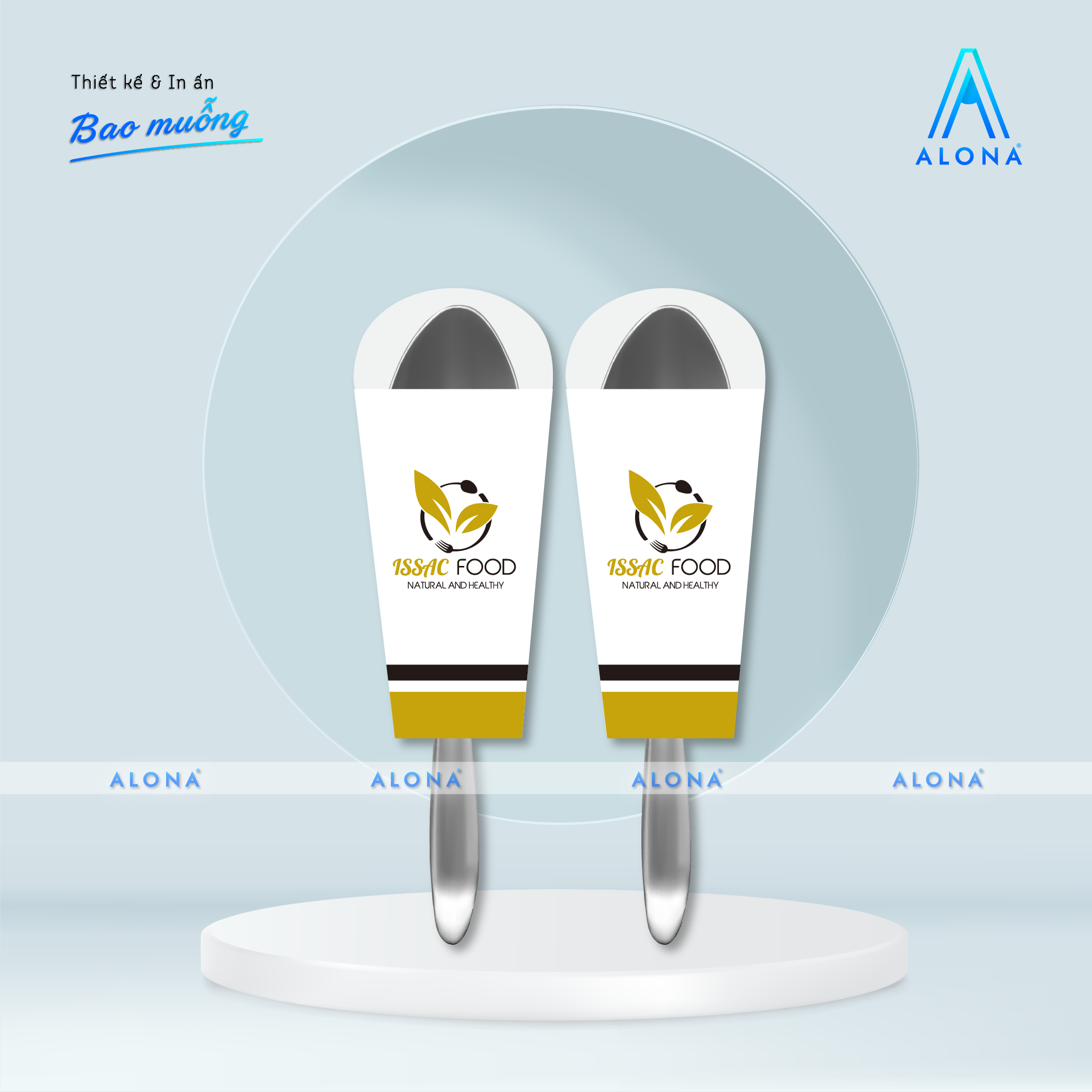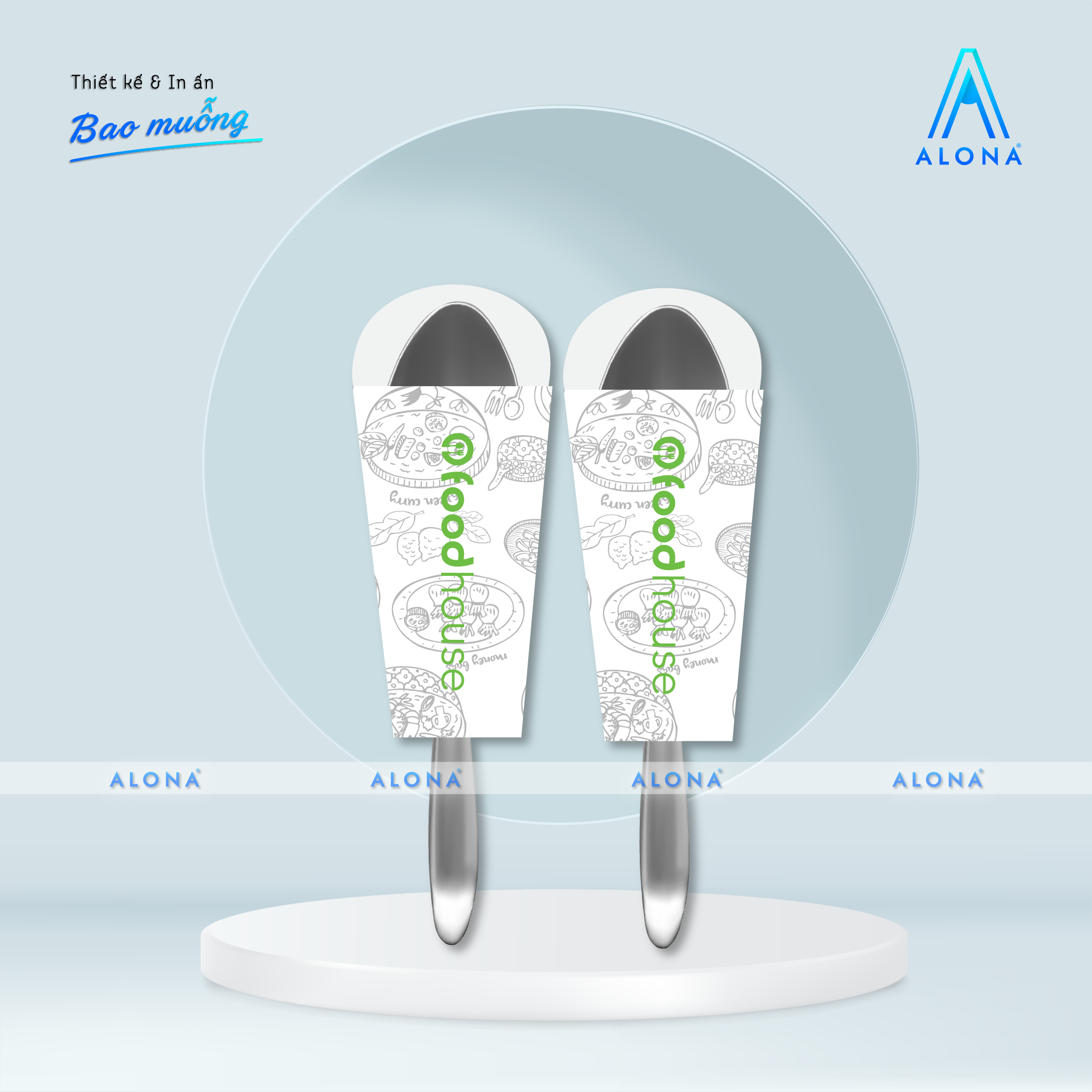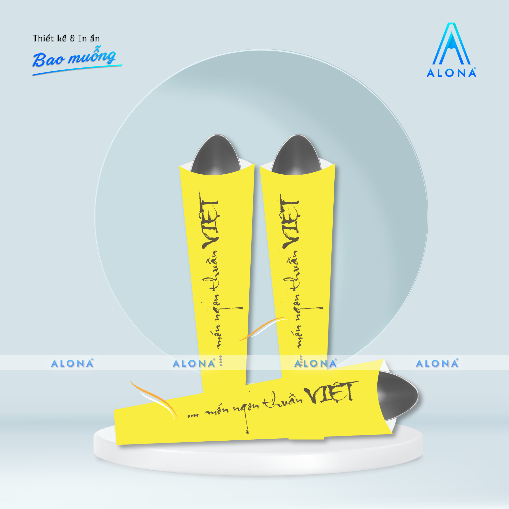 Alona không chỉ in ấn mà còn cung cấp dịch vụ thiết kế bao đựng muỗng chuyên nghiệp, giúp nhà hàng, quán ăn và khách sạn tạo dấu ấn thương hiệu ngay từ những chi tiết nhỏ nhất.