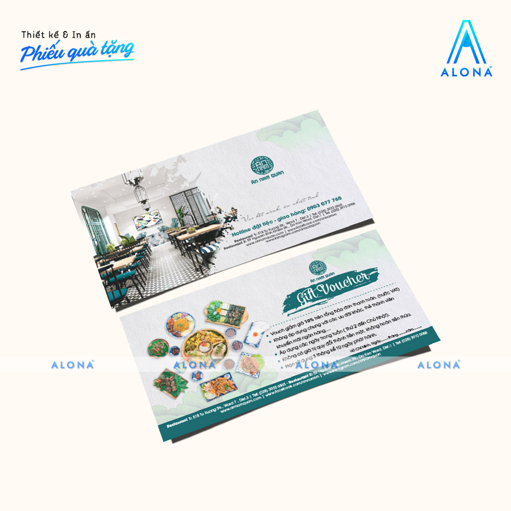 - Đa dạng loại phiếu: Alona thiết kế và in ấn nhiều loại phiếu như phiếu quà tặng, phiếu bảo hành, bookmark, vé mời… đáp ứng đầy đủ nhu cầu sử dụng của các ngành nghề khác nhau.