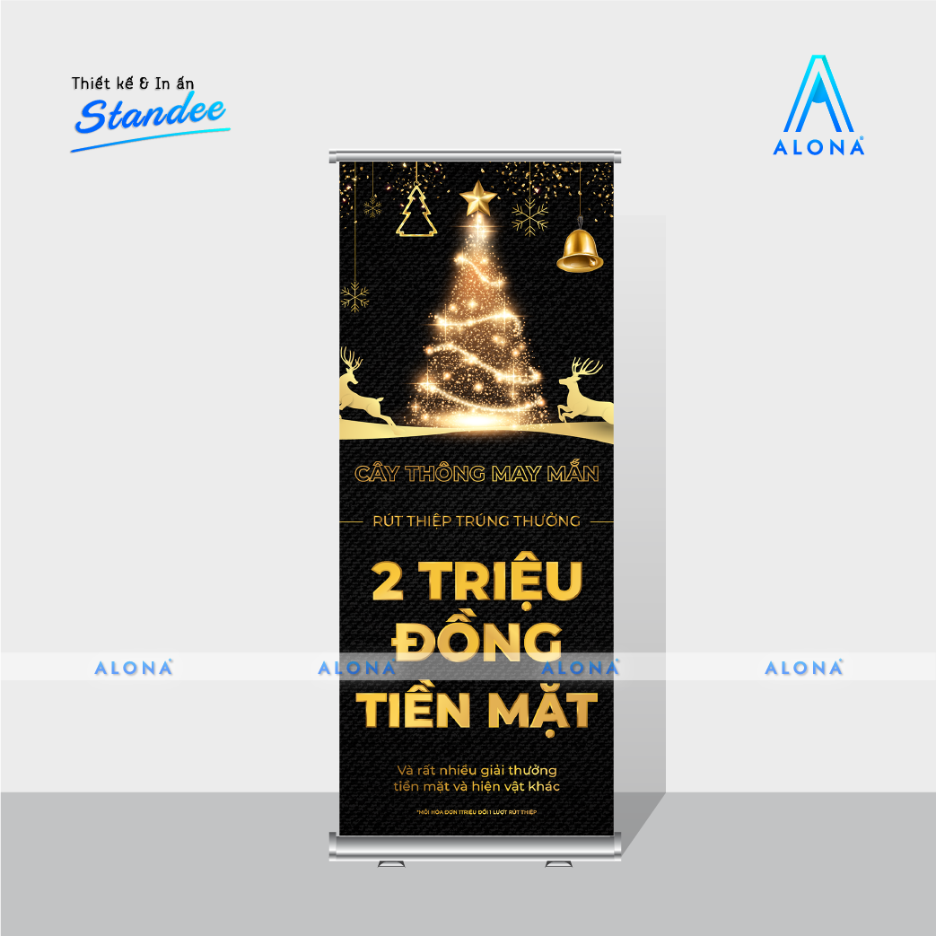 Kích thước standee cuốn cố định là 80cm x 200cm. Đây là kích thước tiêu chuẩn của standee, phù hợp với nhiều không gian quảng cáo khác nhau.