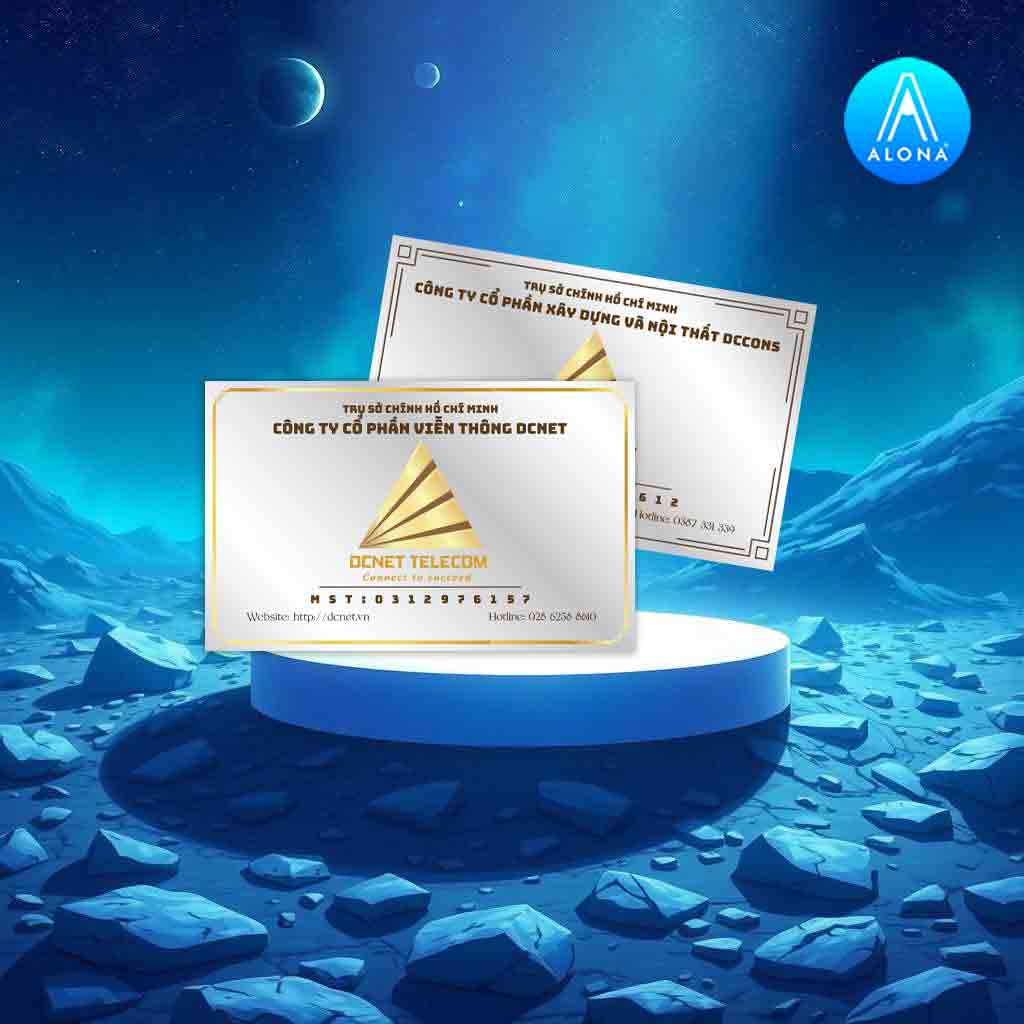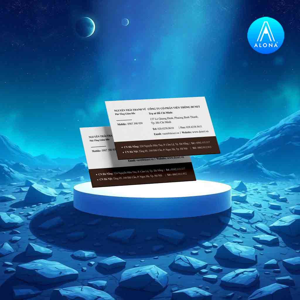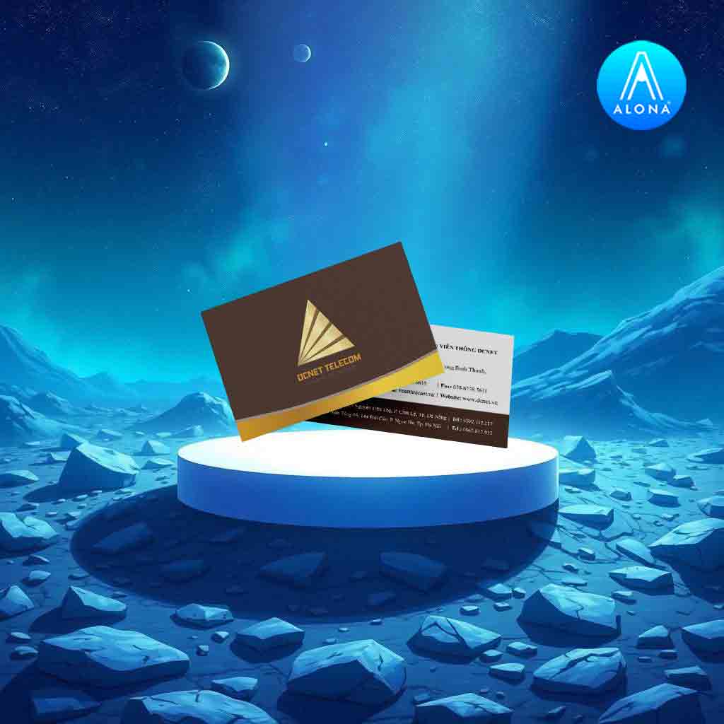 Danh thiếp được chế tác với phong cách tối giản cao cấp, nền màu nâu đậm kết hợp điểm nhấn vàng kim, tạo cảm giác sang trọng và đẳng cấp. Mỗi tấm danh thiếp như một tín hiệu đầu tiên, gọn gàng, rõ ràng, chuyên nghiệp. Khi những kỹ sư DCNET trao danh thiếp, họ không chỉ trao thông tin liên lạc, mà trao đi niềm tin về một đối tác đáng tin cậy, một kết nối bền vững. Đây là cách DCNET khẳng định giá trị thương hiệu ngay từ lần tiếp xúc đầu tiên, thể hiện sự tôn trọng dành cho mỗi khách hàng, mỗi đối tác.