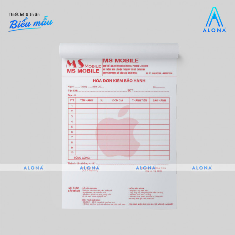 Alona - Đơn vị cung cấp dịch vụ in hóa đơn bán lẻ 2 liên giá rẻ chuyên nghiệp nhất. Giấy in dày đẹp chuẩn nhập khẩu 100%, chất lượng cao, tiết kiệm chi phí.