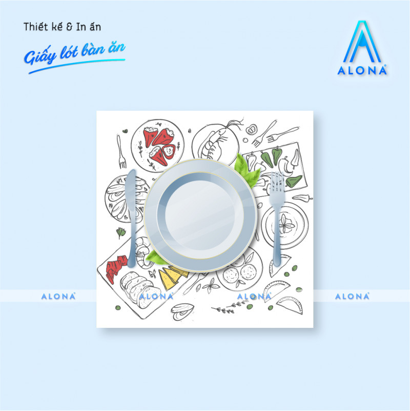 Với dịch vụ in ấn chuyên nghiệp của Alona bạn có thể in logo thương hiệu slogan hay thông điệp riêng lên giấy lót bàn ăn. Đây là cách tuyệt vời để quảng bá thương hiệu một cách tinh tế trong các nhà hàng khách sạn quán cà phê hay trong các sự kiện của doanh nghiệp.