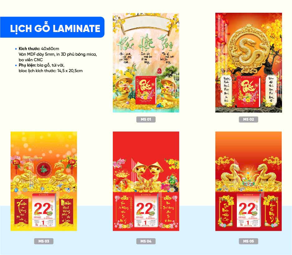Mẫu lịch gỗ Laminate treo tường 2025
