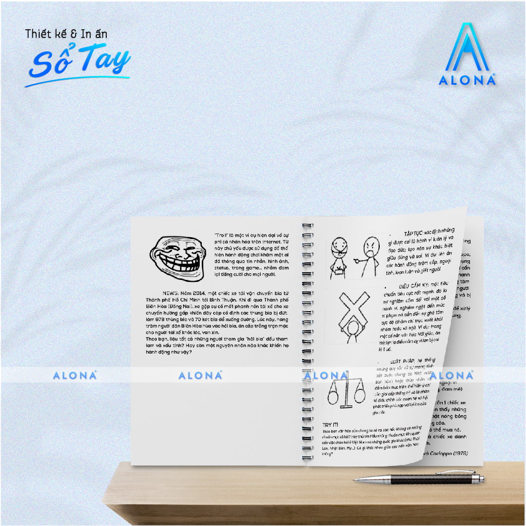 Alona là một trong những địa chỉ uy tín để in mẫu sổ tay lò xo. Với nhiều năm kinh nghiệm trong lĩnh vực in ấn, Alona cung cấp các quy cách in sổ tay lò xo đa dạng, từ kích thước, chất liệu bìa, đến số trang giấy, số lượng đặt hàng và hình thức in ấn.