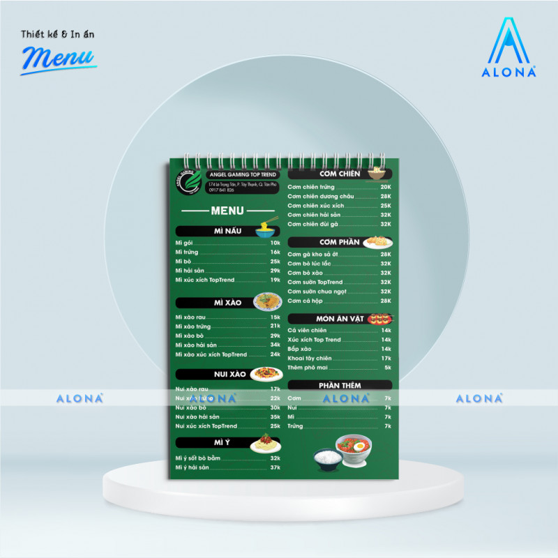 Sáng Tạo Thiết Kế: Với sự năng động và sáng tạo không giới hạn, đội ngũ designer của Alona sẽ mang đến cho bạn những mẫu thiết kế menu ấn tượng và chuyên nghiệp.