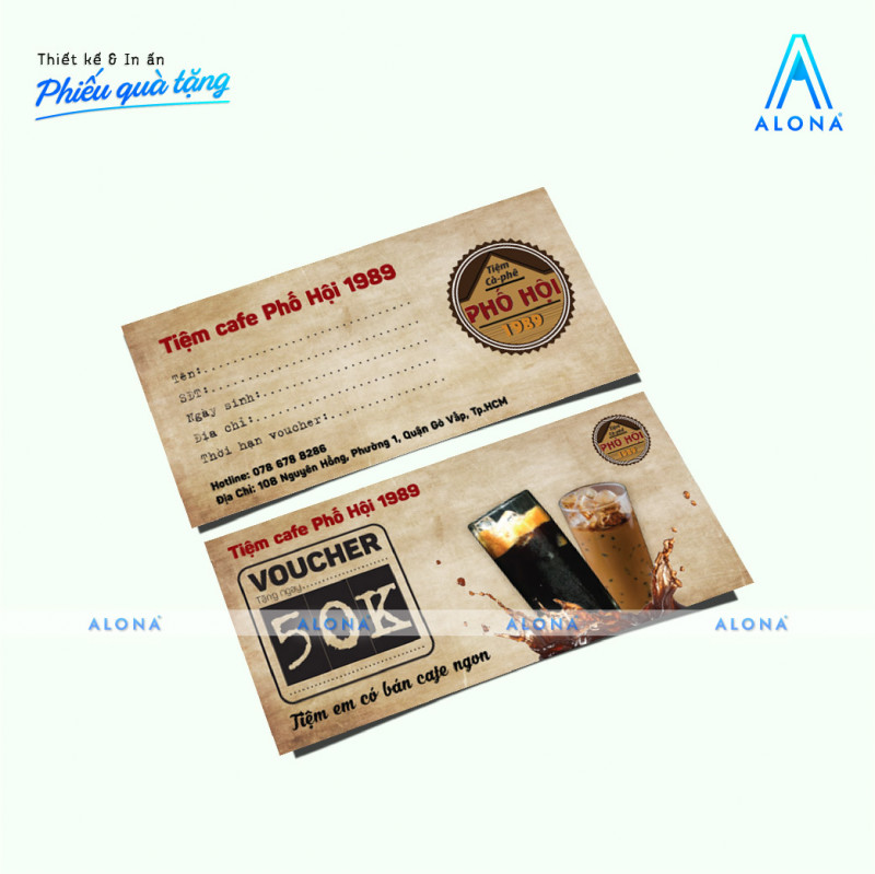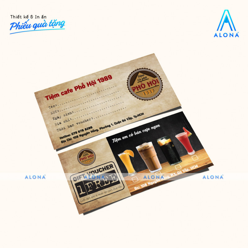 Dịch vụ in phiếu quà tặng tiêu chuẩn cung cấp tùy chọn tùy chỉnh để tạo ra phiếu quà tặng độc đáo và phù hợp với thương hiệu của bạn. Thêm logo, thông tin liên hệ hoặc yếu tố thiết kế khác để tạo sự nhận diện và tăng tính chuyên nghiệp cho phiếu quà tặng.