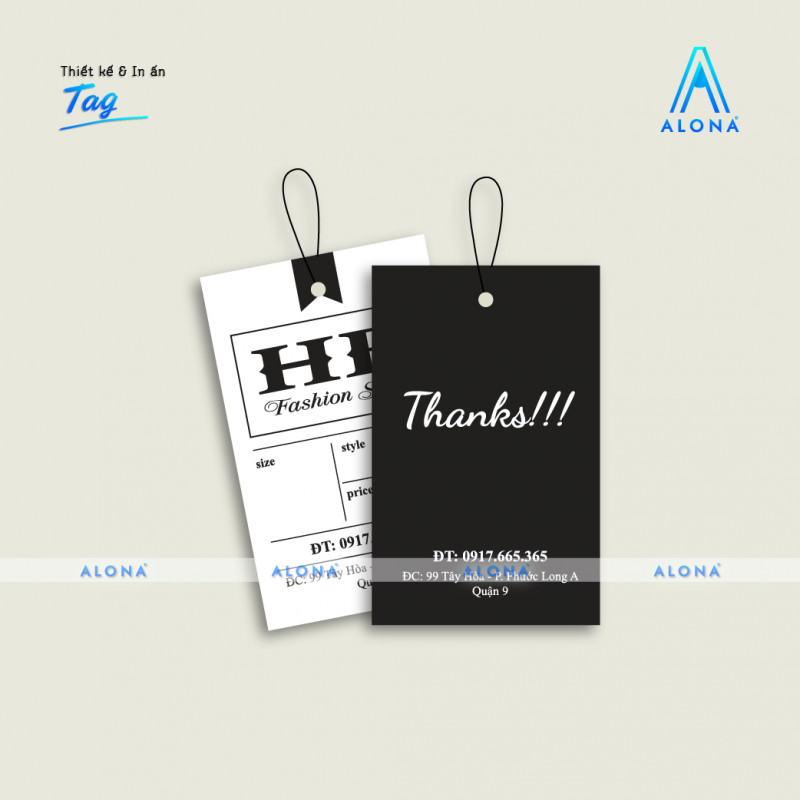 Lựa chọn Kích thước và Hình dạng: Tag cảm ơn hình chữ nhật có nhiều kích thước khác nhau phù hợp với mục đích sử dụng. Xác định kích thước phù hợp sao cho tag không quá lớn làm lu mờ sản phẩm kèm theo, nhưng cũng đủ để chứa tất cả thông tin cần thiết.